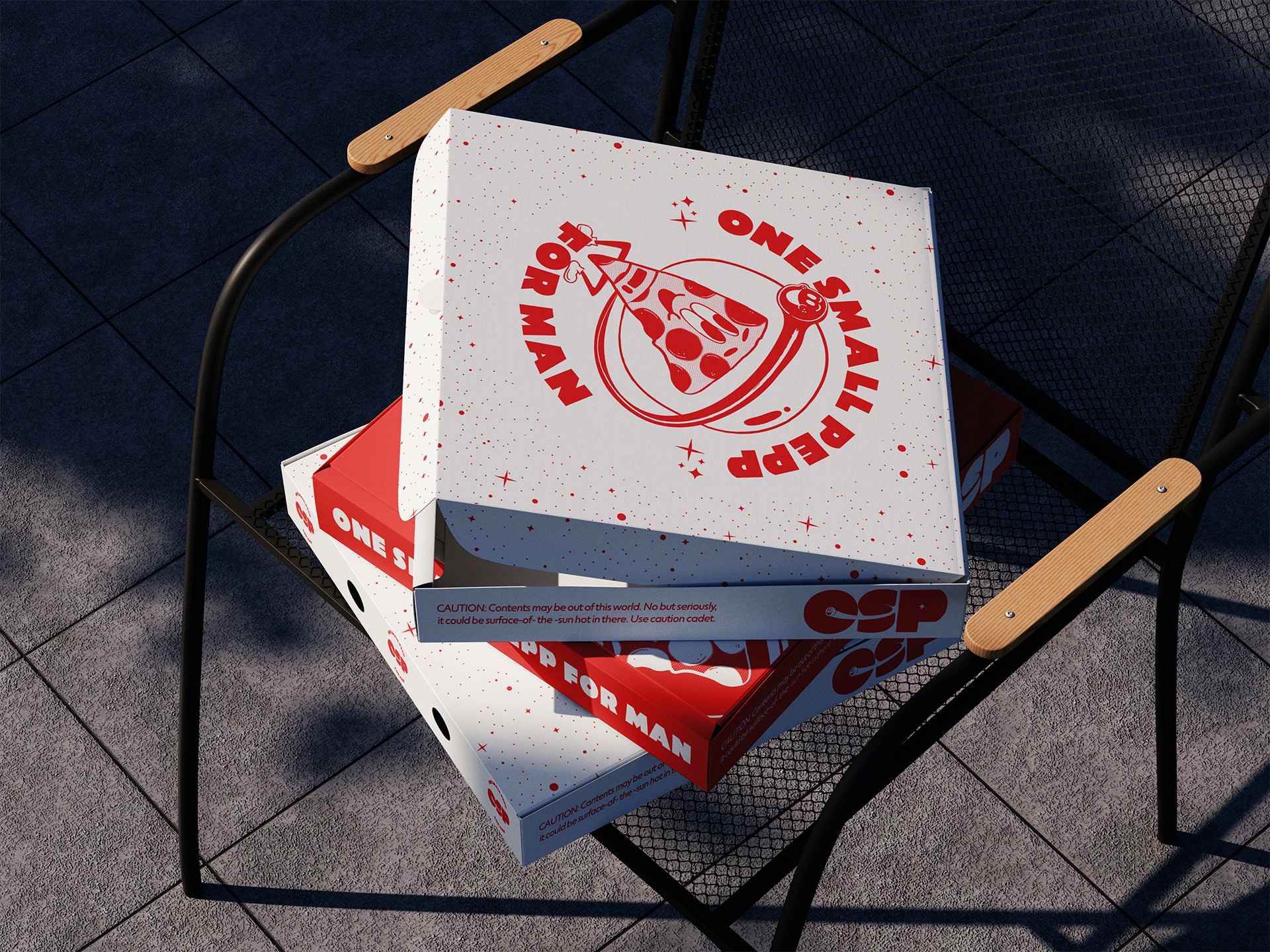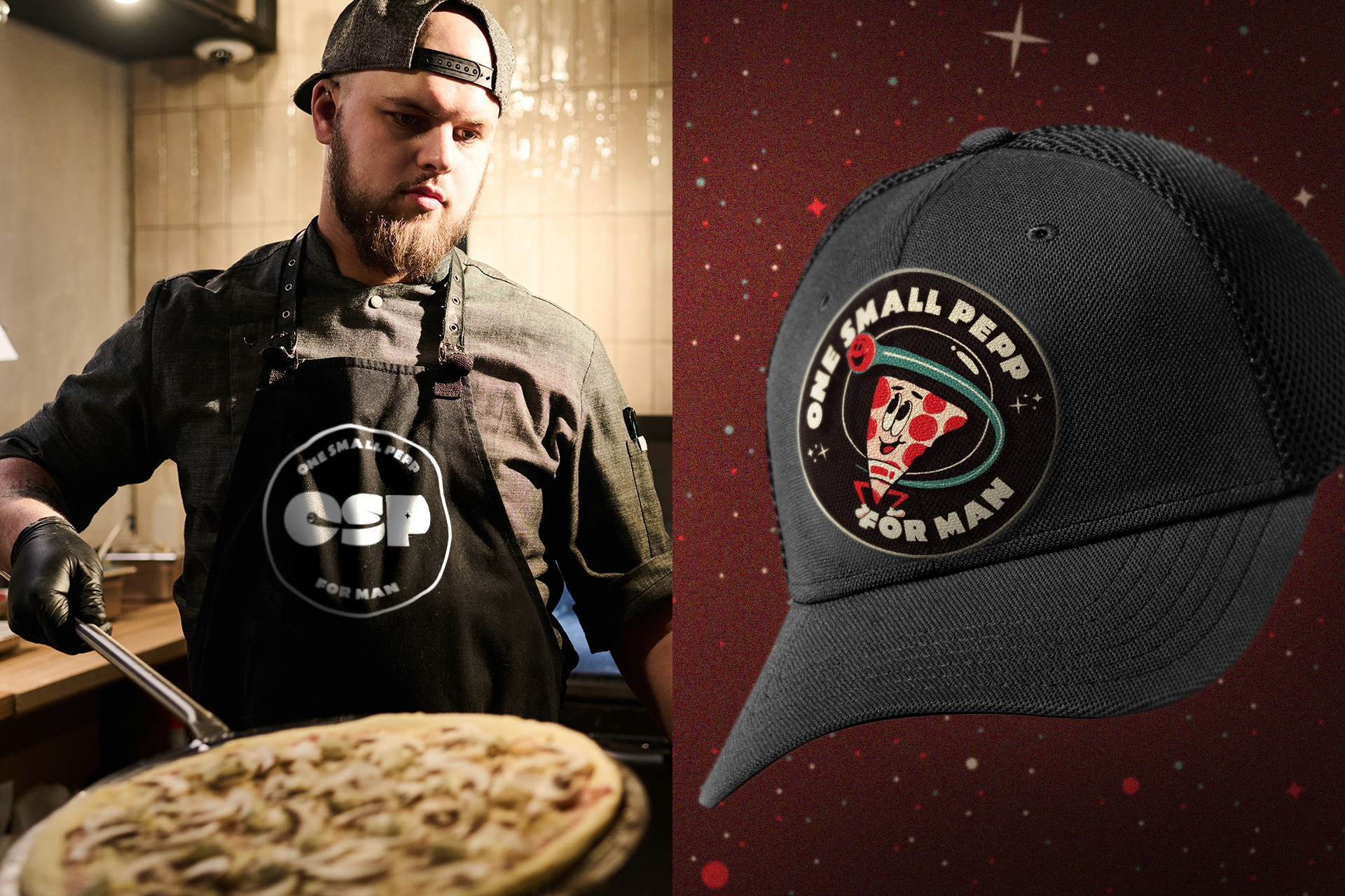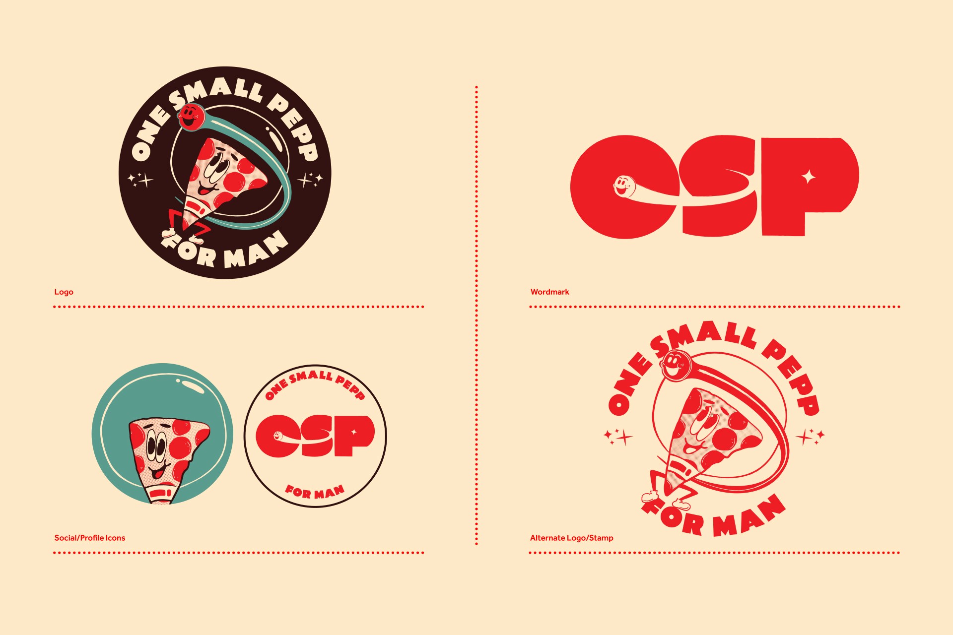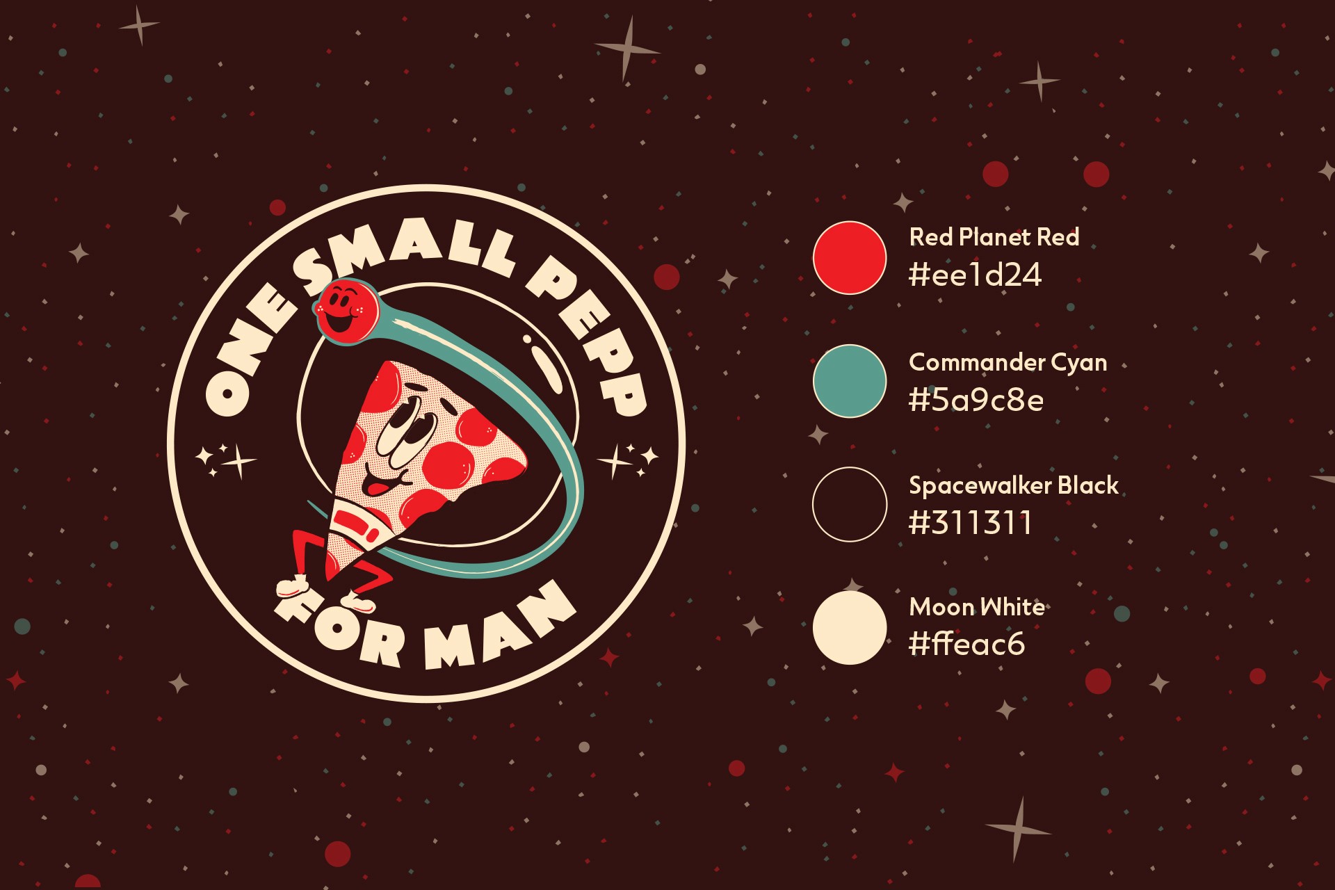 "One Small Pepp for Man" hits that "newstalgia" vibe that stops the scroll. We engineered a visual system to match: a hand-drawn orbiting slice and rounded, retro type. The palette looks like it was ripped from a vintage comic book—Red Planet Red and Commander Cyan popping against Spacewalker Black.